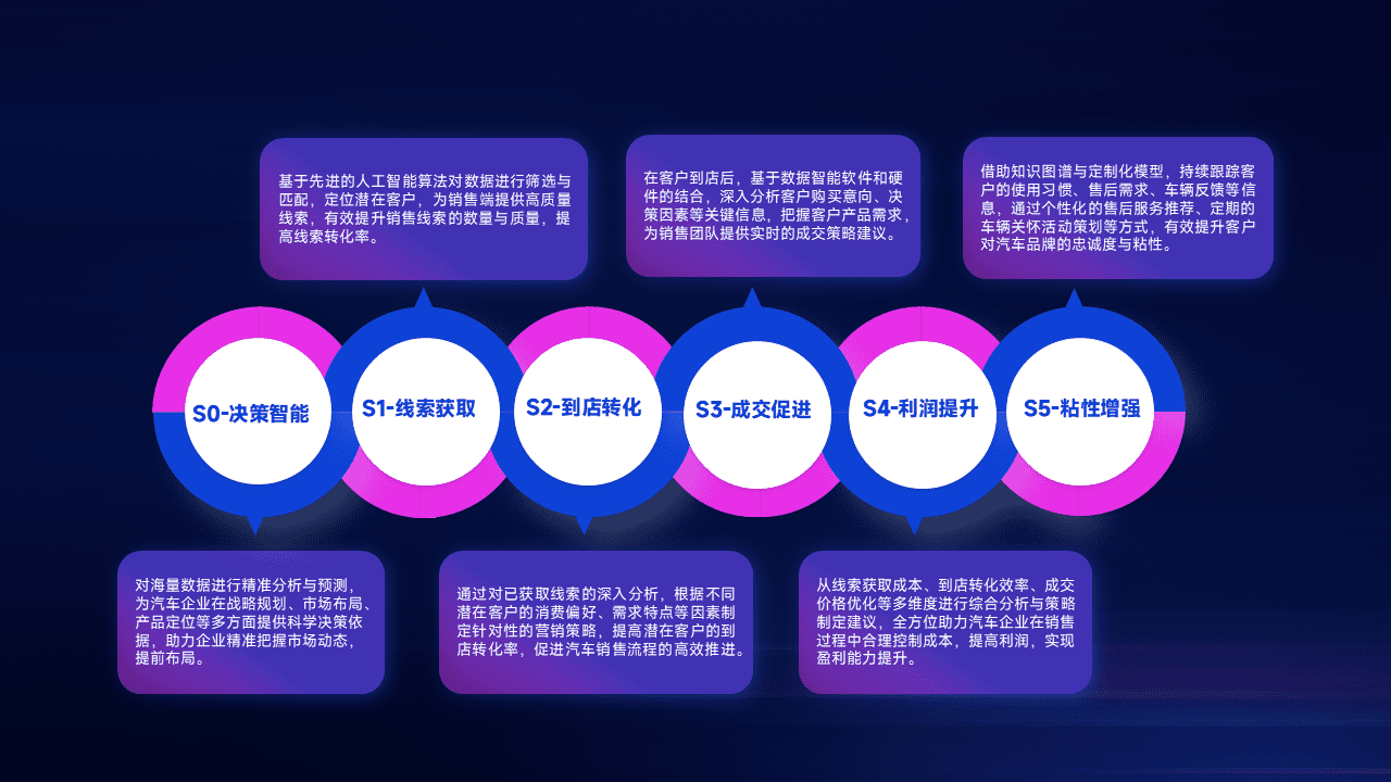 通过拓宽潜在客户来源、、优化线索分配并提高到店转化率,,,,以增强销售效率。。。。同时,,,利用线索数据不断优化分析模型,,有效提升转化率,,,,扩大营销影响力。。。。